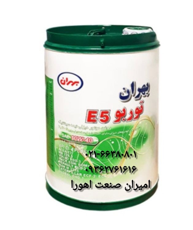 بهران توربو E5 روغن موتور دیزلی نیمه سینتتیک بسیار مرغوب شرکت نفت بهران است که در دسته روغن موتورهای چند درجه ای و اتومات این شرکت قرار دارد و یک روغن چهارفصل به حساب آمده و عدد 10W40 که مقابل این روغن قرار دارد گرانروی آن را نشان می دهد که در دماهای پایین و سرد دارای گرانروی 10 و در دماهای بالا و گرم دارای گرانروی 40 است و برای روانکاری موتور خودروهای دیزلی سنگین توربو شارژ مطابق با استاندارد آلایندگی یورو 5 و پایینتر که تحت شرايط سخت كار ميكنند، مناسب است.